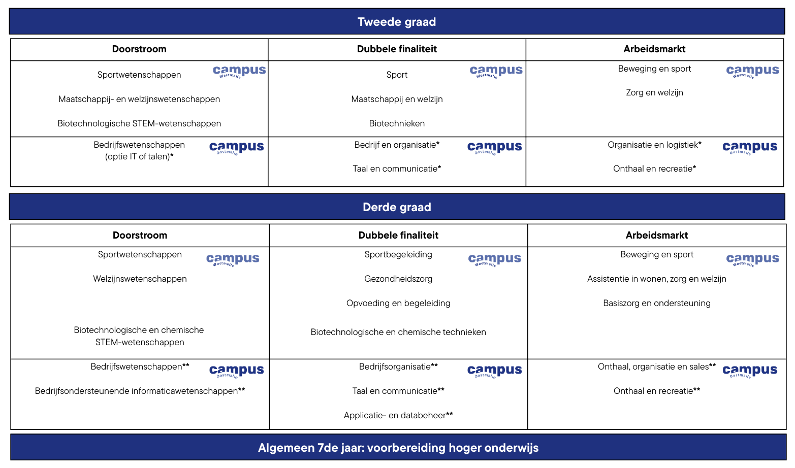 Arbeidsmarktgerichte finaliteit: voorbereiding op arbeidsmarkt, graduaatsopleiding of algemeen 7de jaar