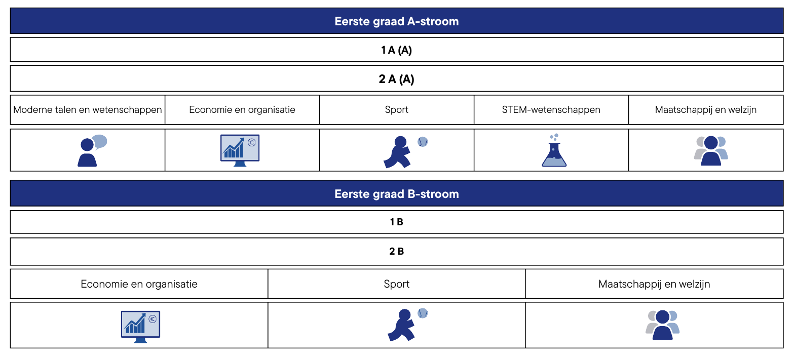 In de eerste graad kan je starten in de A-stroom of B-stroom.